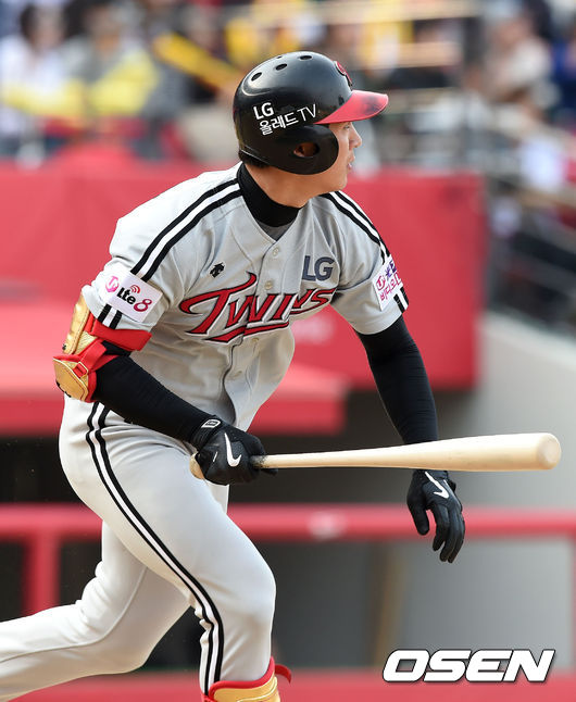 29일 오후 광주-KIA챔피언스필드에서 진행된 '2015 타이어뱅크 KBO 리그' KIA와 LG의 경기, 6회초 1사 1,2루에서 LG 오지환이 적시 2루타를 치고 그라운드를 달리고 있다.