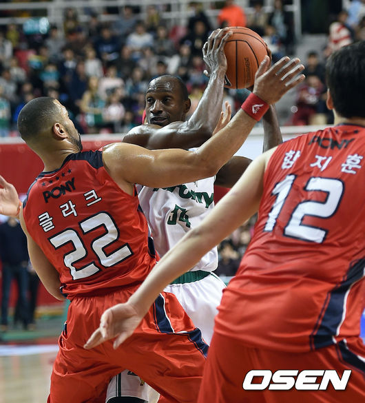 29일 오후 울산동천체육관서 열린 2014-2015 KCC 프로농구 챔피언결정전 1차전 울산 모비스와 원주 동부의 경기,2쿼터 동부 리처드슨이 패스 시도하고 있다.