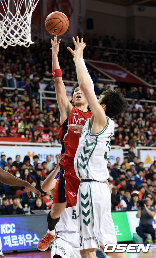 29일 오후 울산동천체육관서 열린 2014-2015 KCC 프로농구 챔피언결정전 1차전 울산 모비스와 원주 동부의 경기,3쿼터 모비스 양동근이 레이업슛을 성공시키고 있다.