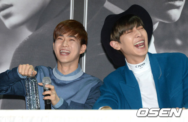 엑소 수호와 찬열이 30일 오전 서울 삼성동 코엑스 SM타운에서 열린 컴백 기자회견에 참석하고 있다.