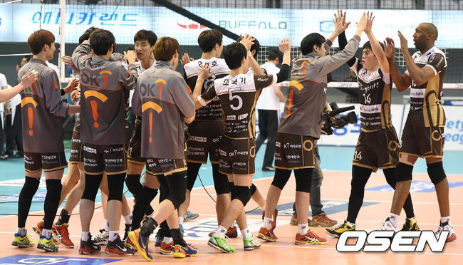경기종료후 승리한 OK저축은행 선수들이 승리의 기쁨을 나누고 있다./greenfield@osen.co.kr