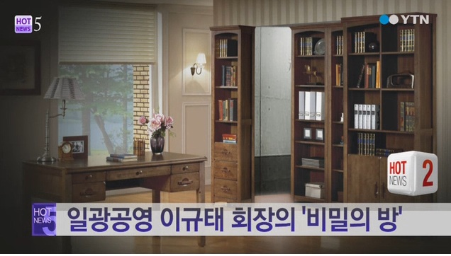 이 방은 얼마 전 방산비리로 구속된 일광공영 이규태 회장의 비밀의 방으로, 주변을 감시할 수 있는 CCTV 모니터가 9대나 설치돼 있다. 또 침대 뒤에는 비상 시 빠져나갈 수 있는 도주로까지 만들어 놨다. 이 비밀의 방은 일광공영에서 불과 130 미터 떨어진 건물 안에 있었다.