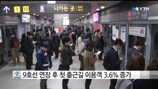 [OSEN=이슈팀] 9호선 연장개통 3일째이자 시민들이 첫 출근길에 오른 오늘 역시나 이용객이 개통 전보다 증가한 것으로 조사됐다.