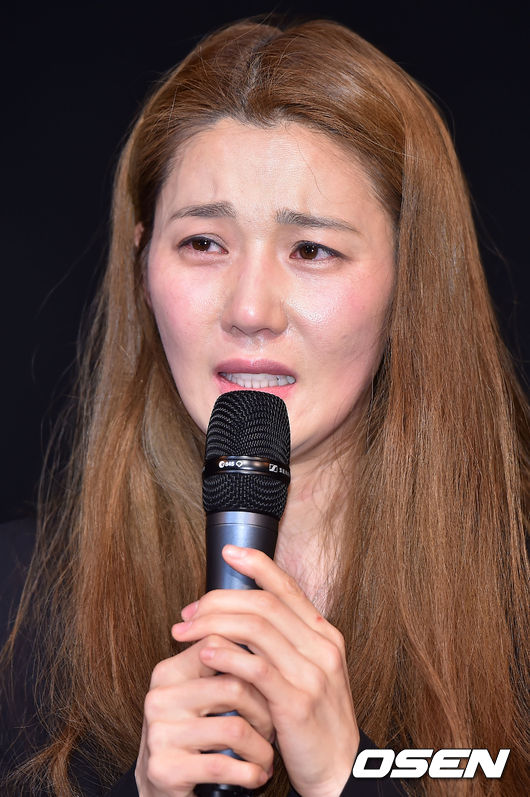 31일 오후 서울시 종로구 동숭동 대학로 유니플렉스 3관에서 열린 길건 기자회견에서 길건이 눈물을 흘리고 있다.