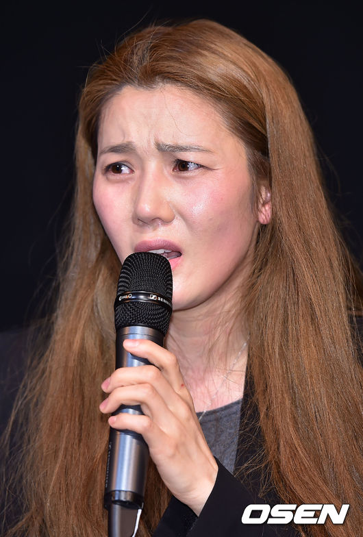 31일 오후 서울시 종로구 동숭동 대학로 유니플렉스 3관에서 열린 길건 기자회견에서 길건이 눈물을 흘리며 기자회견을 하고 있다.