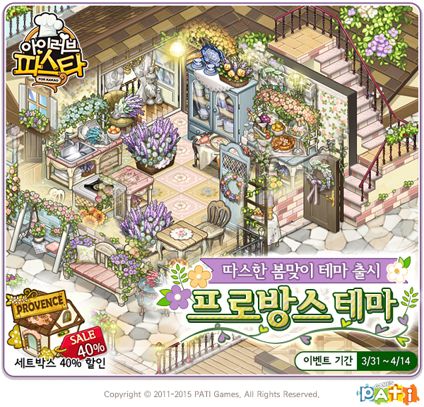 이 외에도 신규 출시된 ‘프로방스 테마 세트박스 할인 이벤트’와 4월 1일 하루 동안 특별 퀘스트를 완료하고 보상을 지급받을 수 있는 ‘만우절 이벤트’ 등 풍성한 이벤트가 마련된다.