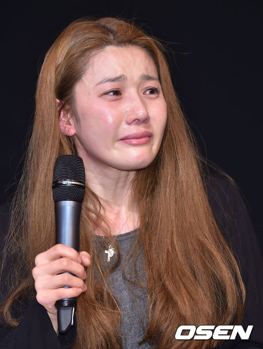 31일 오후 서울시 종로구 동숭동 대학로 유니플렉스 3관에서 열린 길건 기자회견에서 길건이 눈물을 흘리며 기자회견을 하고 있다.