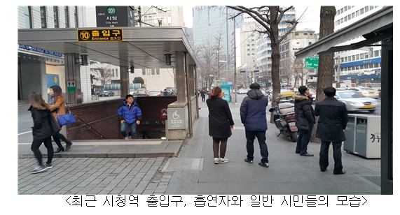 서울시의회 최판술(새정치민주연합, 중구1)·김혜련 의원(새정치민주연합, 동작2)이 26일 공동 발의한 개정안에 따르면 시 관할 구역의 지하철역 출입구로부터 10m 이내를 금연구역으로 지정하고 있다.