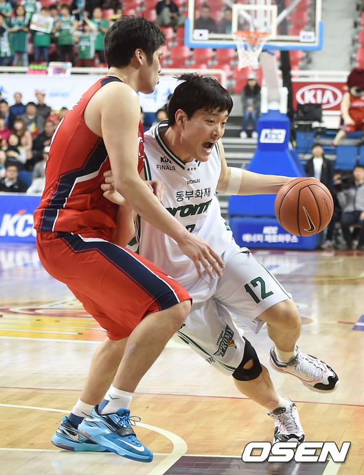 2쿼터, 동부 김봉수가 모비스 함지훈 수비를 뚫고 있다.