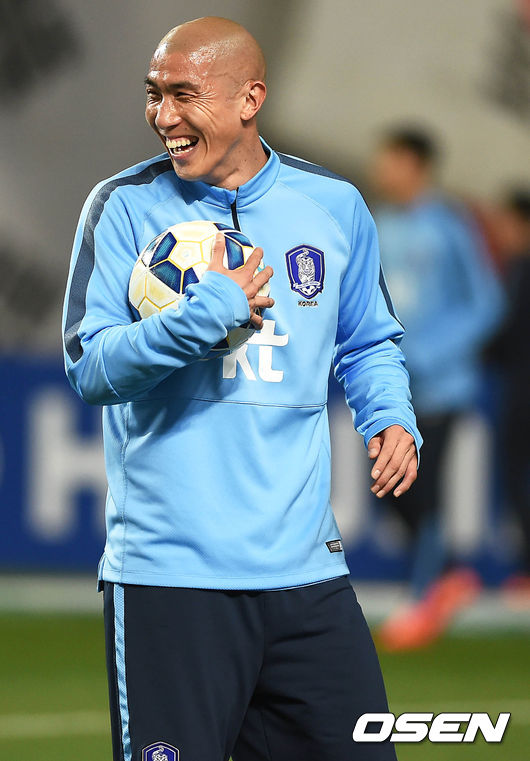 31일 오후 서울월드컵경기장에서 열린 한국과 뉴질랜드의 평가전 차두리가 미소지으며 경기를 준비하고 있다.