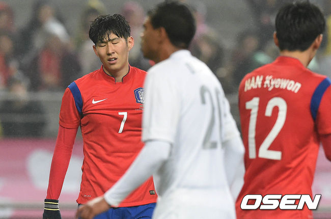 울리 슈틸리케 감독이 지휘하는 한국 축구대표팀은 31일 서울월드컵경기장서 열린 뉴질랜드와 평가전에서 전반전을 0-0으로 마쳤다. 한국은 전반 38분 한교원이 페널티킥을 얻어냈지만 키커로 나선 손흥민의 슈팅이 골키퍼 스테판 마리노비치에 막혀 골을 기록하지 못했다.