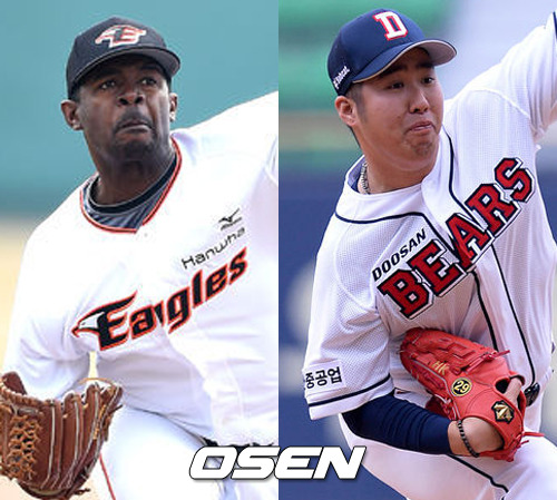 한화 쉐인 유먼(36)과 두산 유희관(29)이 우천 연기의 여파로 맞대결이 하루 늦춰졌다. 1일 대전 한화생명이글스파크에서 열리는 한화·두산의 시즌 맞대결 선발로 한화 유먼과 두산 유희관이 그대로 예고됐다.