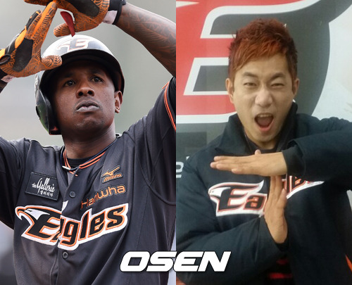 지난달 31일 대전 한화생명이글스파크. 한화와 두산의 시즌 첫 맞대결이 우천으로 연기된 가운데 한화 외국인 타자 나이저 모건은 훈련을 마친 뒤 퇴근을 하고 있었다. 그러던 모건이 가던 길을 멈추고 어느 누군가와 마주쳤다. 이야기를 하더니 와락 품에 안겨 포옹을 했다. 홍창화 한화 응원단장이었다.