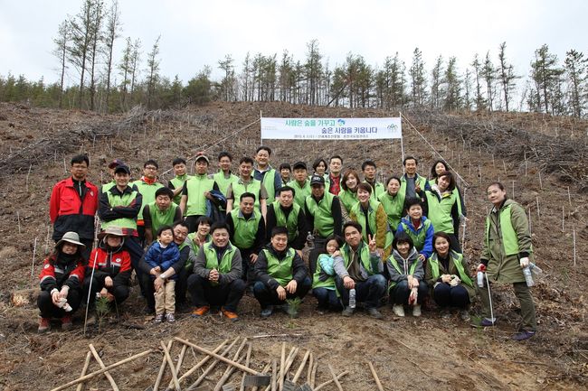 작년부터는 춘천국유림관리소와 인연을 맺고 강원도 화천군 간동면 간척리 산에 나무 1500본을 심기 시작했다. 올해도 임직원 40명이 힘을 합쳐 소나무 2년생 총 1500본을 심는다.
