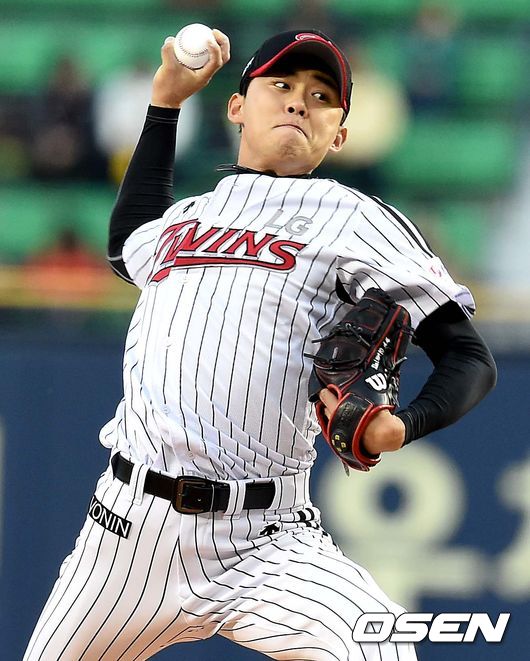 LG 선발 임정우가 힘차게 공을 뿌리고 있다.