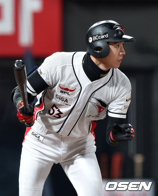 3회말 1사 1루에서 kt 이대형이 좌중간을 가르는 안타를 치고 있다.