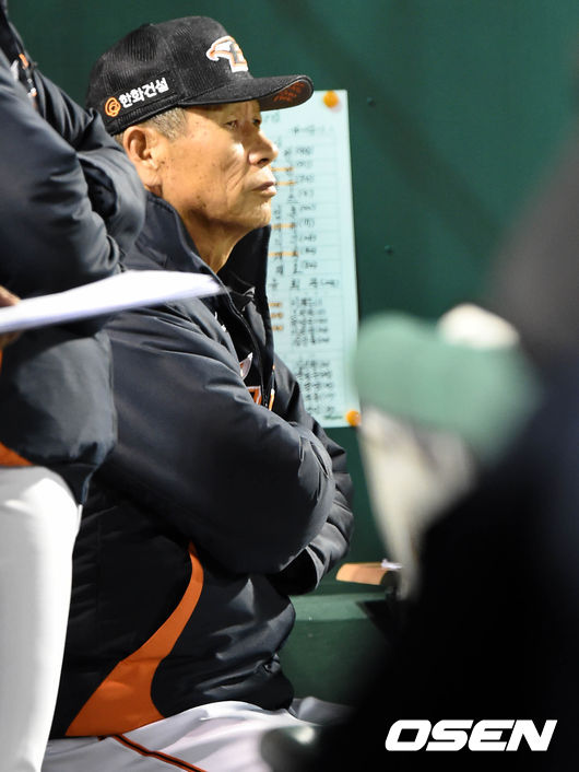 1일 오후 대전 한화생명이글스파크에서 열린 '2015 타이어뱅크 KBO 리그' 한화 이글스와 두산 베어스의 경기, 한화 김성근 감독이 경기를 지켜보고 있다.