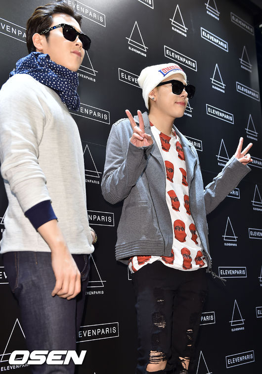1일 오후 서울 강남구 신사동 가로수길 일레븐파리 클래그십 스토어에서 열린 포토월 행사에서 블락비 지코&피오가 포토타임을 갖고 있다.