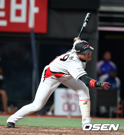 7회말 1사 2,3루에서 kt 김상현이 삼진으로 물러나고 있다.