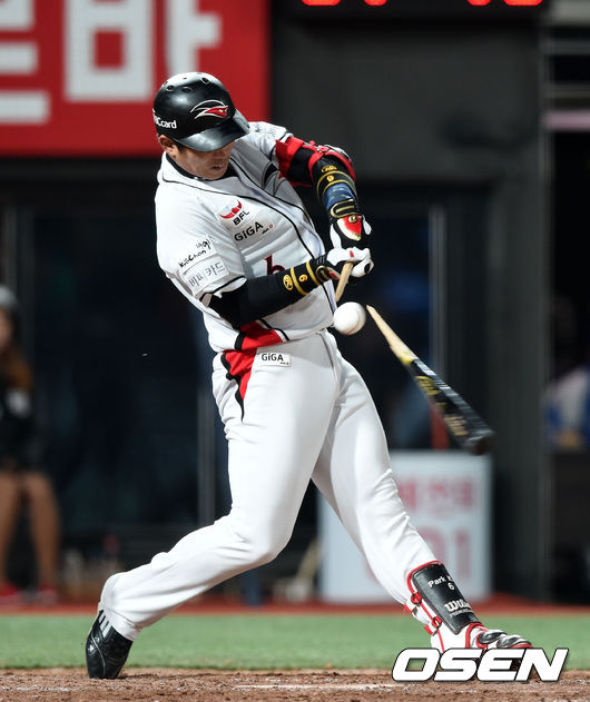 8회말 무사에서 kt 박경수의 타격때 배트가 부러지고 있다.