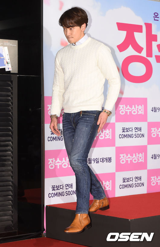 1일 오후 서울 영등포 CGV에서 진행된 영화 '장수상회' VIP 시사회에 참석한 비가 포토월을 빠져나가고 있다.