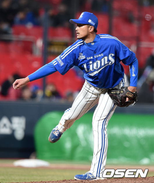 9회말 삼성 권오준이 힘차게 공을 던지고 있다.