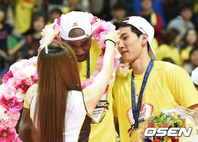 OK저축은행은 1일 오후 안산 상록수체육관서 열린 2014-2015 NH농협 V-리그 남자부 챔피언결정전(5전3승제) 3차전 홈경기서 삼성화재를 세트스코어 3-1(25-19, 25-19, 11-25, 25-23)로 완파했다. 좌우 쌍포인 시몬(21점)과 송명근(20점)이 41점을 합작하며 우승을 이끌었다.