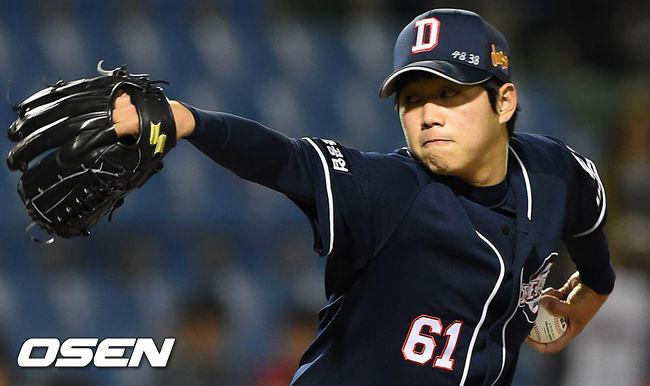 1일 오후 대전 한화생명이글스파크에서 열린 '2015 타이어뱅크 KBO 리그' 한화 이글스와 두산 베어스의 경기, 8회말 마운드에 오른 두산 함덕주가 힘차게 공을 던지고 있다.