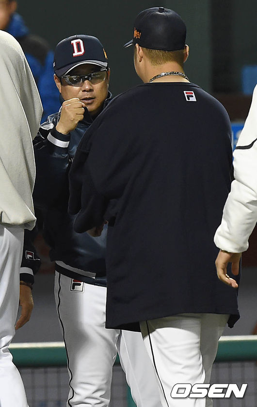 경기종료후 두산 김태형 감독과 유희관이 기쁜을 나누고 있다./greenfield@osen.co.kr