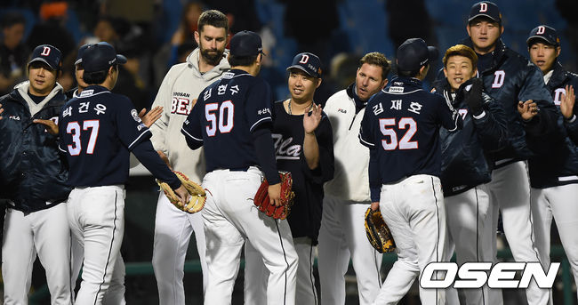 경기종료후 두산 선수들이 승리의 기쁨을 나누고 있다./greenfield@osen.co.kr