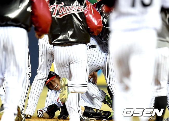 연장 10회말 LG 공격 2사 1, 2루 상황 끝내기타를 날린 김용의가 동료들의 축하를 받고 있다./dreamer@osen.co.kr