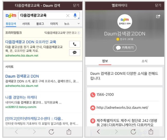 다음카카오는 모바일 다음 검색광고에 사업자와 이용자가 카카오톡 1대1 상담을 할 수 있도록 옐로아이디 버튼을 제공하는 ‘다음 검색광고 옐로아이디 연동 서비스’를 실시한다고 2일 밝혔다.
