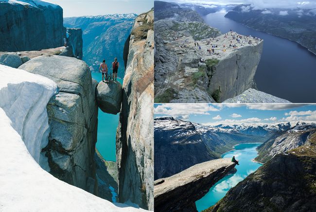 왼쪽은 뤼세피오르 크셰라그볼튼, 오른쪽 위는 프레이케스톨렌, 오른쪽 아래는 트롤퉁가 / 노르웨이관광청 제공