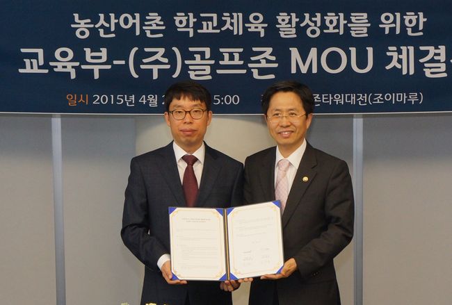 이 자리에서 교육부는 골프시뮬레이터 설치가 필요한 농산어촌 초·중학교를 선정하고, 골프존은 선정된 학교에 인테리어를 포함한 GS(골프시뮬레이터) 설치, 골프 클럽 제공, 교육 지원 협조, 골프 꿈나무 육성 지원 등을 담당하는 등 농산어촌 지역의 학교체육 활성화에 기여하기로 했다.