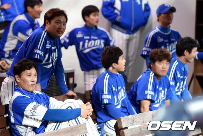 삼성 이승엽-박한이-박석민을 비롯한 선수들이 비오는 그라운드를 바라보고 있다./dreamer@osen.co.kr