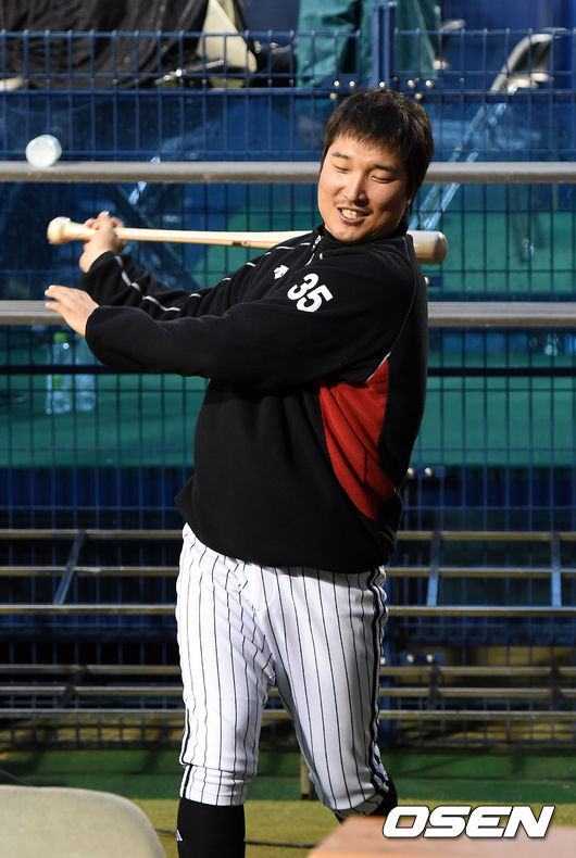 LG 이진영이 더그아웃에서 배트를 휘두르고 있다./sunday@osen.co.kr