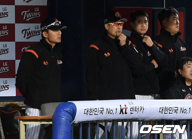 롯데 이종운 감독이 비가 내리는 하늘을 바라보고 있다./sunday@osen.co.kr