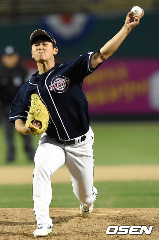 2일 오후 대전 한화생명이글스파크에서 열린 '2015 타이어뱅크 KBO 리그' 한화 이글스와 두산 베어스의 경기, 1회말 두산 선발투수 진야곱이 힘차게 공을 던지고 있다.
