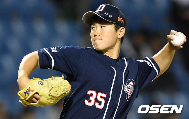 2일 오후 대전 한화생명이글스파크에서 열린 '2015 타이어뱅크 KBO 리그' 한화 이글스와 두산 베어스의 경기, 3회말 두사 선발투수 진야곱이 힘차게 공을 던지고 있다.