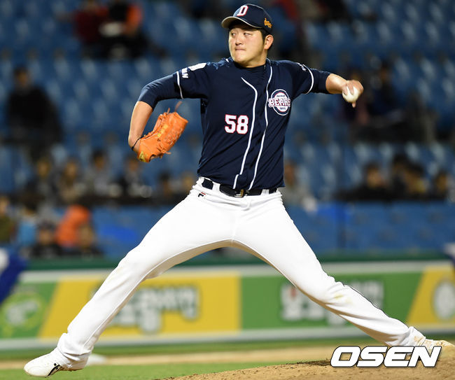 2일 오후 대전 한화생명이글스파크에서 열린 '2015 타이어뱅크 KBO 리그' 한화 이글스와 두산 베어스의 경기, 4회말 2사 주자 2,3루 두산 이원재에 이어 마운드에 오른 장민익이 힘차게 공을 던지고 있다.
