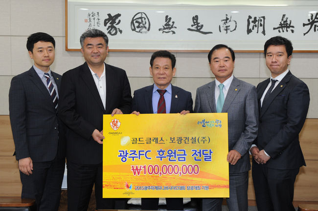 광주·전남을 기반으로 전국적으로 아파트사업을 하는 건설업체인 골드클래스와 보광건설이 합동하여 광주FC에 1억 원을 후원했다.