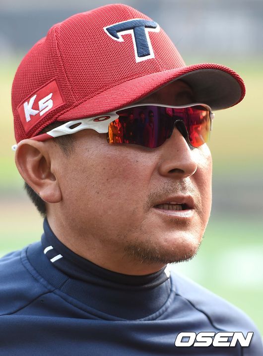 3일 오후 경기도 수원 케이티 위즈파크에서 열리는 '2015 타이어뱅크 KBO리그' kt 위즈와 KIA 타이거즈의 경기를 앞두고, 수염을 기른 KIA 김기태 감독이 취재진과 대화를 나누고 있다.