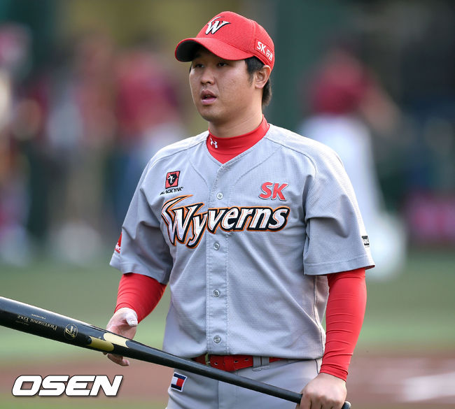 3일 오후 서울 목동구장에서 열린 '2015 타이어뱅크 KBO리그' 넥센 히어로즈와 SK 와이번스의 경기,SK 최정이 타격훈련을 마친후 더그아웃으로 들어가고 있다.