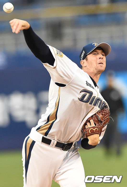 3일 오후 창원 마산구장에서 열리 '2015 타이어뱅크 KBO 리그' NC다이노스와 한화 이글스의 경기, 1회초 NC 선발투수 찰리가 힘차게 공을 던지고 있다.