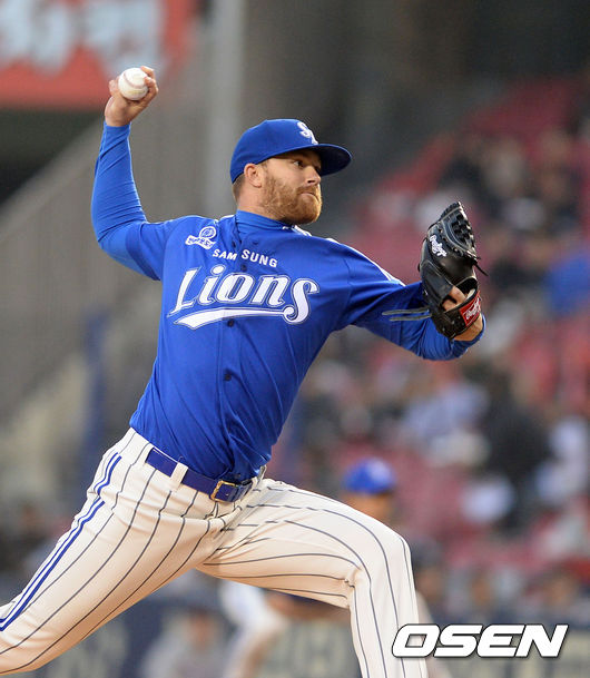 3일 오후 서울 잠실야구장에서 열린 '2015 타이어뱅크 KBO 리그' LG 트윈스와 삼성 라이온즈의 경기, 1회말 삼성 선발 클로이드가 역투하고 있다.