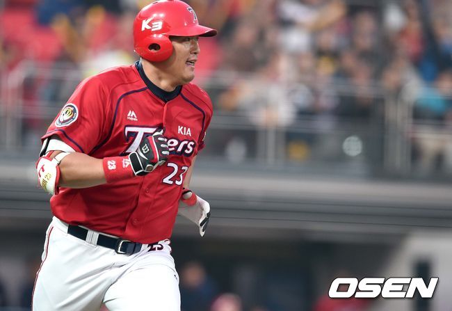 2회초 KIA 공격 1사 주자없는 상황 최희섭이 선제 중월 솔로포를 날리고 그라운드를 돌고 있다.