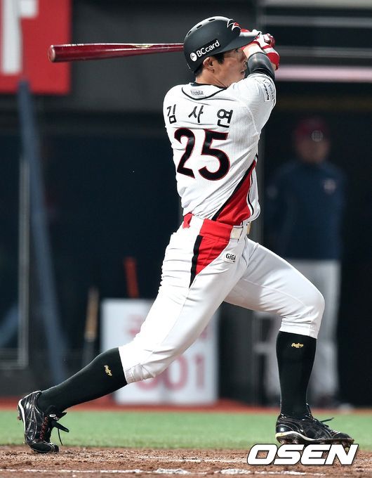 3회말 kt 공격 선두타자로 나선 김사연이 좌중간 3루타를 날리고 있다.