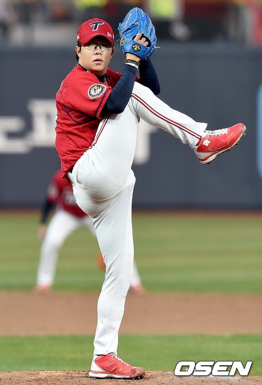 KIA 선발 양현종이 힘차게 공을 뿌리고 있다.