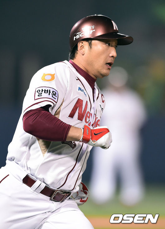 3일 오후 서울 목동구장에서 열린 '2015 타이어뱅크 KBO리그' 넥센 히어로즈와 SK 와이번스의 경기,5회말 넥센 선두타자 이택근이 솔로홈런을 날린뒤 베이스를 돌고 있다.