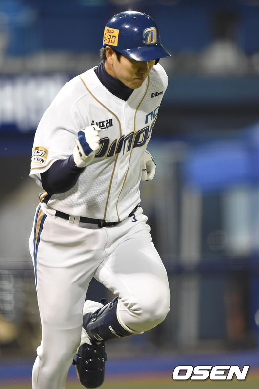 3일 오후 창원 마산구장에서 열리 '2015 타이어뱅크 KBO 리그' NC다이노스와 한화 이글스의 경기, 5회말 1사 주자 1,3루 NC 모창민이 1타점 적시타를 치고 주루하고 있다.